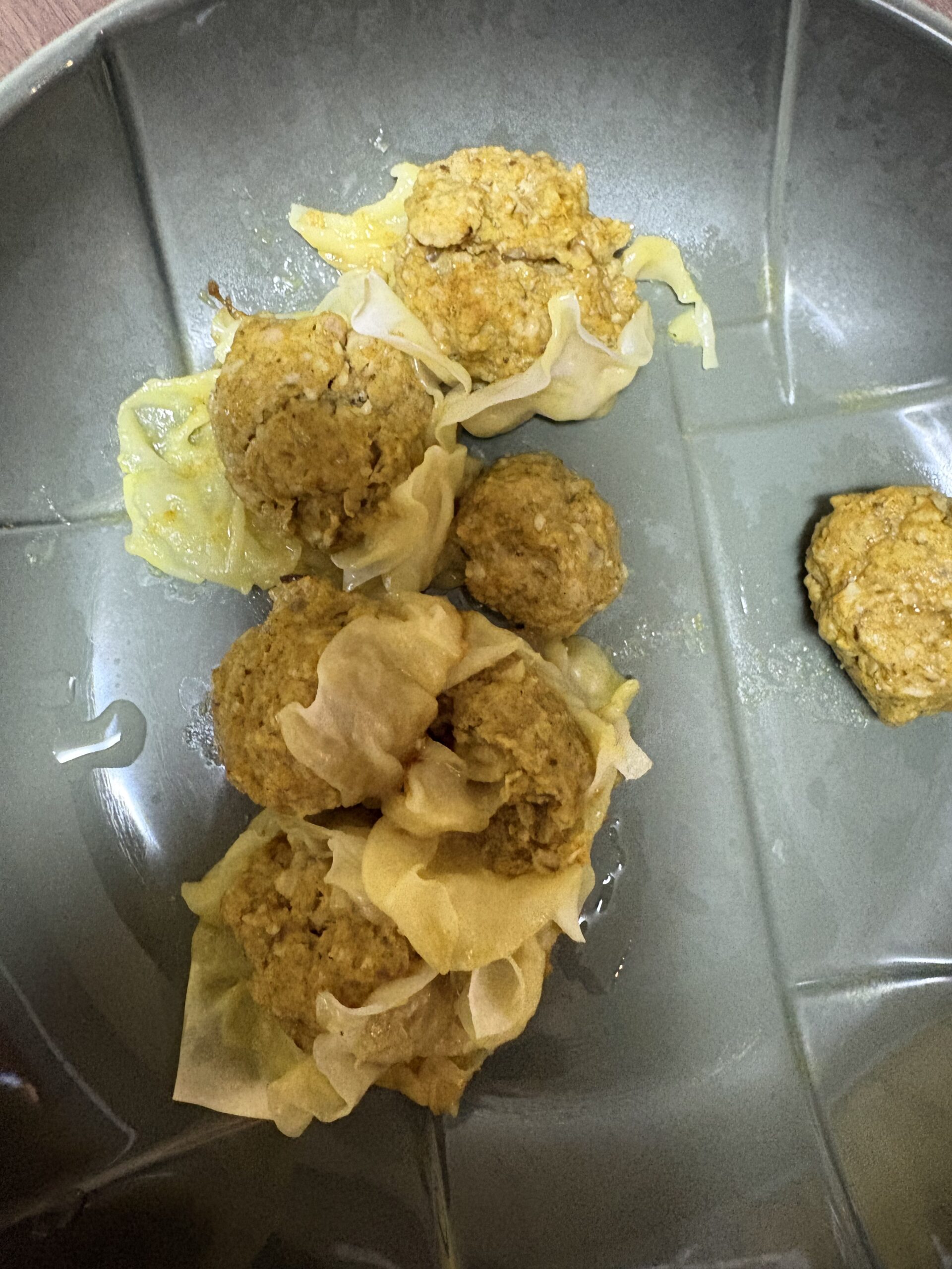 朝からキッチンに立て篭もり、 焼売を作っておりました。 S&Bの赤缶でカレー味です。 炊飯器で火を通してみたところ、 皮がぐちゃぐちゃになり、 なんていうか、肉団子が無事調理されたようです。 逆さに置いてみるか、水を少なめにした方がいいのかも、、、
