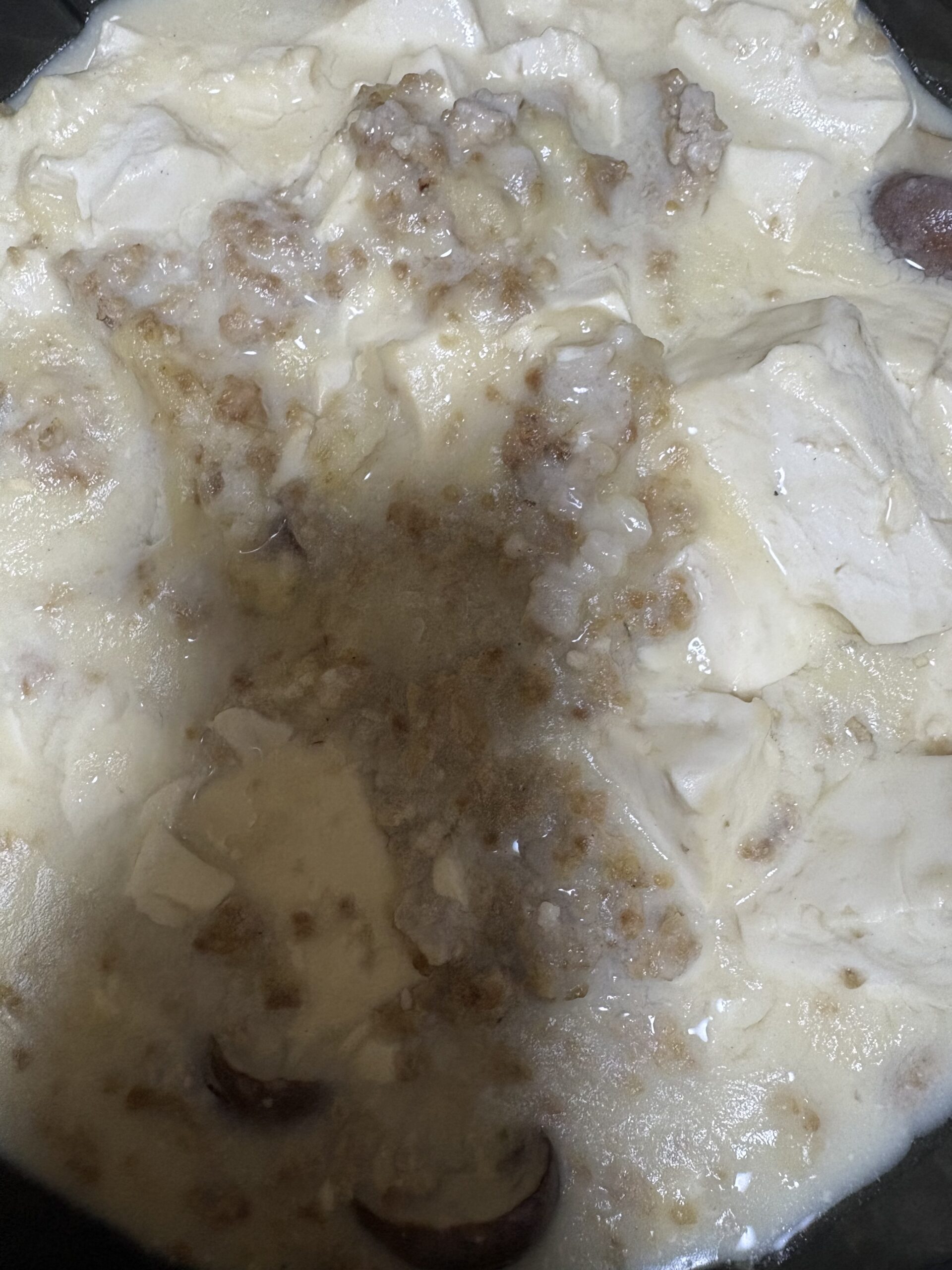 麻婆豆腐以外の豆腐料理を研究しております。 本日は、S&B濃いシチューを使ってみました。 鶏肉とマッシュルームとで、カラフルではなく、 白っぽく作ってみましたが、 当ブログをご覧の方のスマホが白黒になったわけではなく、 料理が白っぽいだけです。御心配なく、、、 なかなかの出来ですが、挽肉もマッシュルームもなしで、 豆腐オンリーで、かつ、もっと濃いめにしたらお酒じゃんじゃん進みそうです。 次回は白麻婆豆腐に挑戦しますっ!