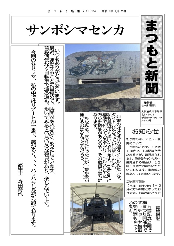 私も最近よく歩いております。iphoneに標準で付いているアプリヘルスケアに万歩計機能があるので、その数値も励みになります。