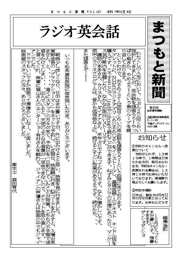 いつも松本歯科医院に御来院いただき、ありがとうございます。