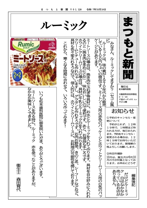 いつも松本歯科医院に御来院いただき、ありがとうございます。